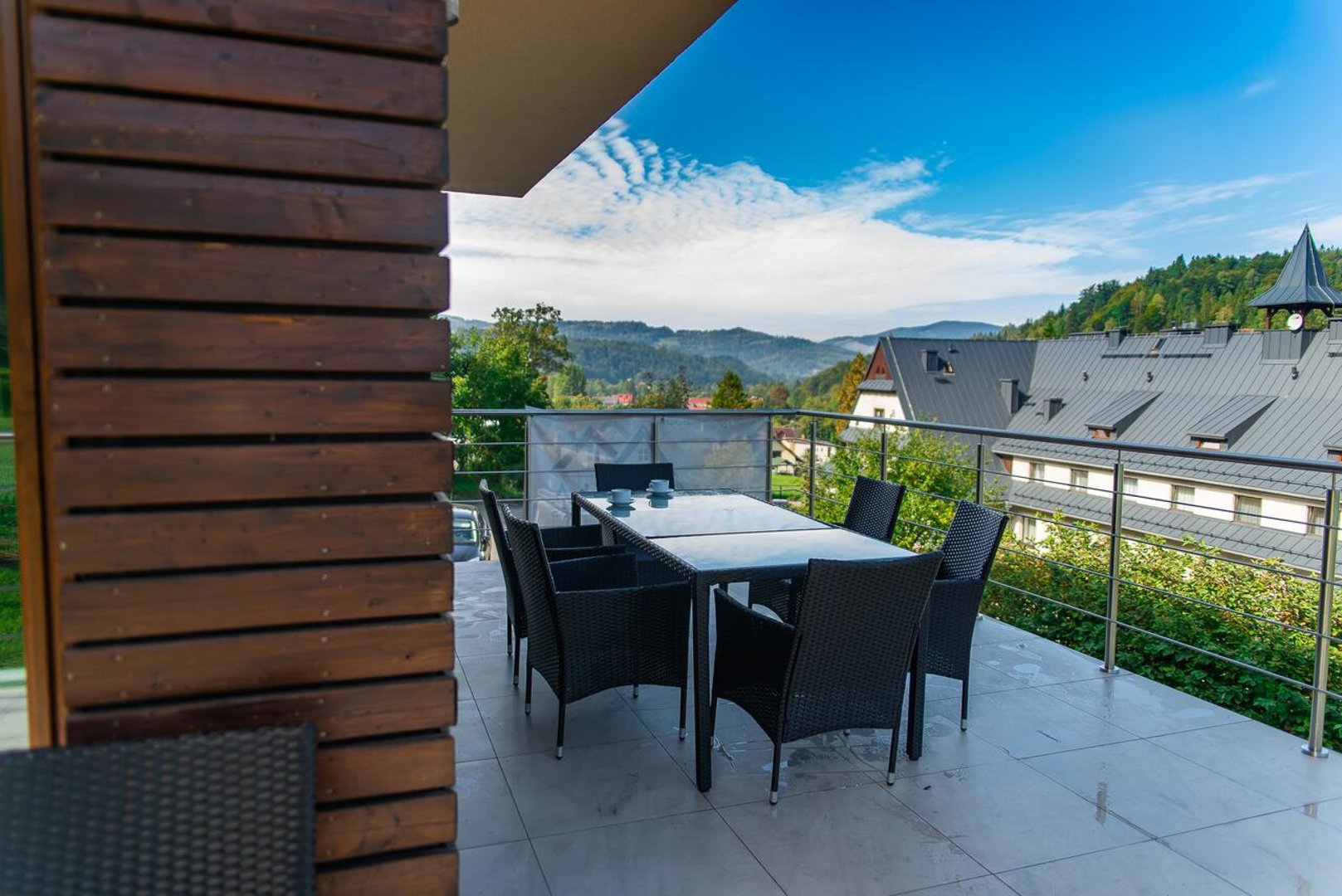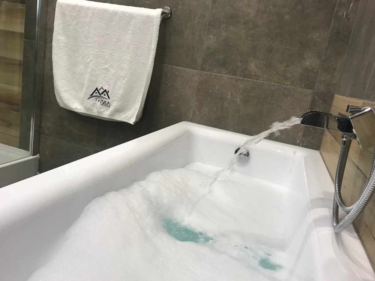 Do dyspozycji gości oddajemy ponad 160m dom z 4 pokojami 2-osobowymi z możliwością dostawki dla dzieci. Z każdego z nich rozpościera się piękna panorama gór. Ponadto dom posiada duża w pełni wyposażoną kuchnię a także przestronny salon z którego wychodzimy wprost na widokowy taras oraz jedną łazienke z prysznicem, wanna i toaletą oraz drugą toaletę na parterze. Opcjonalnie jacuzzi dla gości