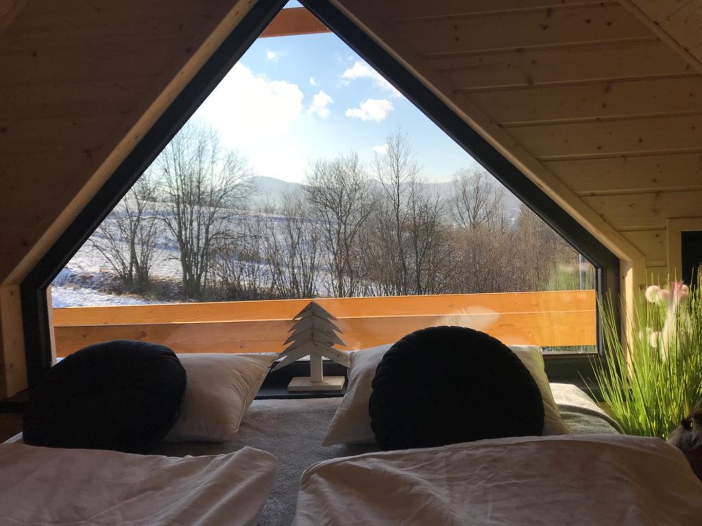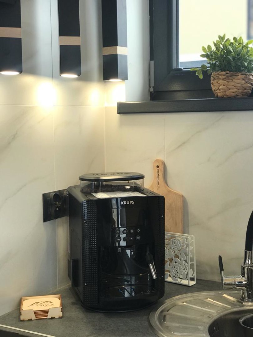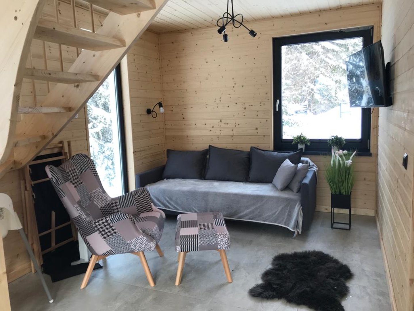 Panoramę gór można podziwiać z drewnianego tarasu popijając świeżą kawe parzoną z naszego ekspresu lub poleniuchować na leżaku a wieczorem usiąść przy ognisku lub grillu w specjalnie do tego wyznaczonym miejscu.